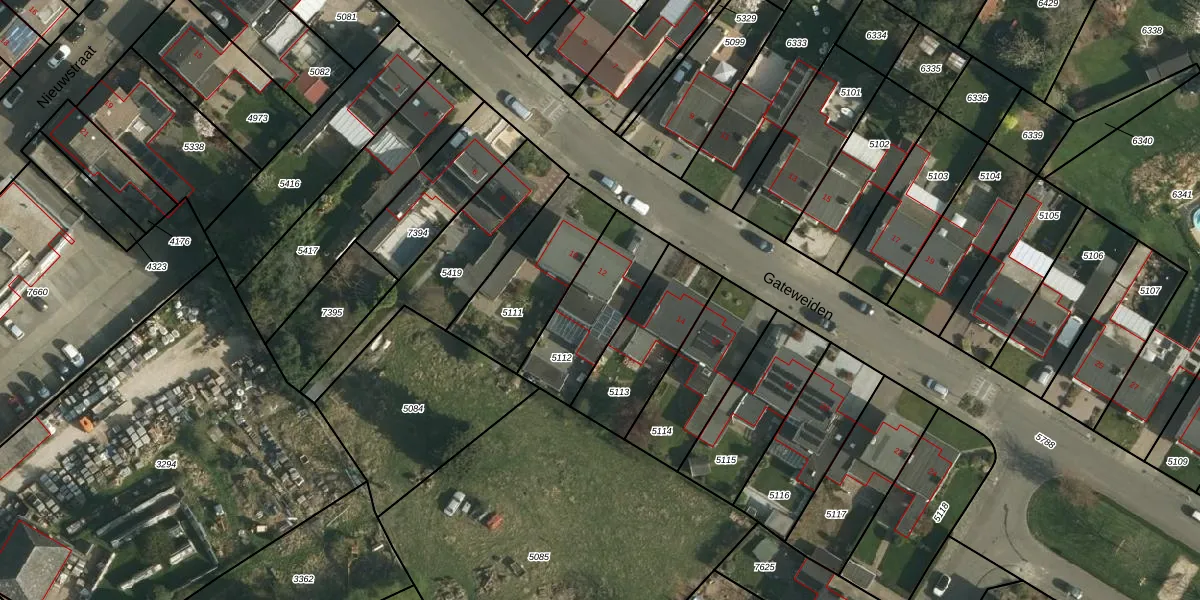 Gateweiden 12 is gelegen op kadastraal perceel NWH01B5112. Deze kadastrale aanduiding is uniek en wordt gebruikt door het Kadaster om eigendomsrechten en andere zakelijke rechten vast te leggen. Het perceel maakt onderdeel uit van de kadastrale gemeente Nieuwenhagen.
