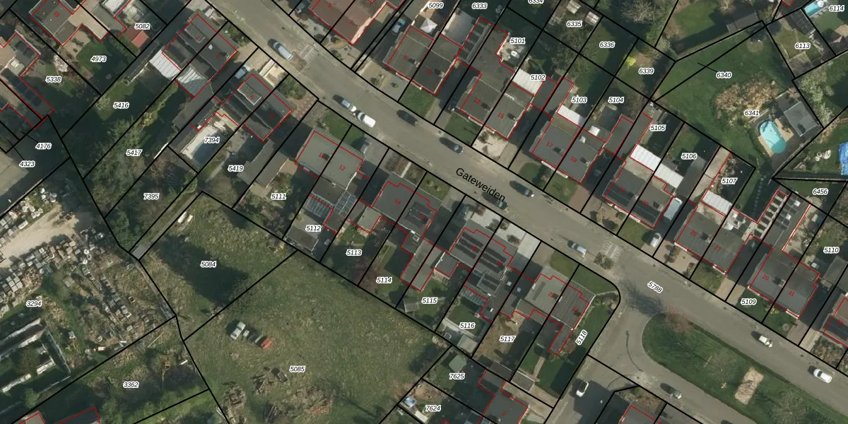 Het perceel waarop Gateweiden 16 staat heeft een oppervlakte van 339 m². Dit is een groot perceel. De perceeloppervlakte wordt geregistreerd door het Kadaster. Gedetailleerde informatie over de maten van dit perceel kunt u vinden in het rapport Kadastrale kaart met maatvoering van Gateweiden 16.