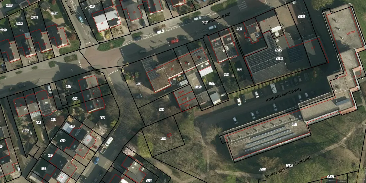 Het perceel waarop Godfried Bomansstraat 2000 staat heeft een oppervlakte van 368 m². Dit is een groot perceel. De perceeloppervlakte wordt geregistreerd door het Kadaster. Gedetailleerde informatie over de maten van dit perceel kunt u vinden in het rapport Kadastrale kaart met maatvoering van Godfried Bomansstraat 2000.