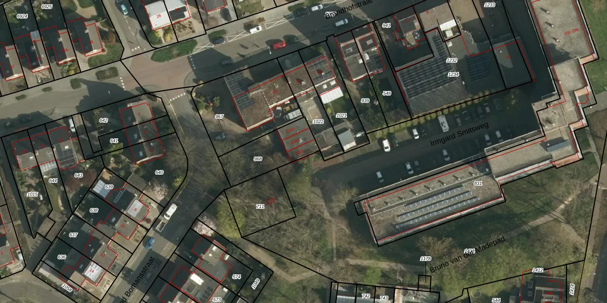 Het perceel waarop Godfried Bomansstraat 2002 staat heeft een oppervlakte van 368 m². Dit is een groot perceel. De perceeloppervlakte wordt geregistreerd door het Kadaster. Gedetailleerde informatie over de maten van dit perceel kunt u vinden in het rapport Kadastrale kaart met maatvoering van Godfried Bomansstraat 2002.