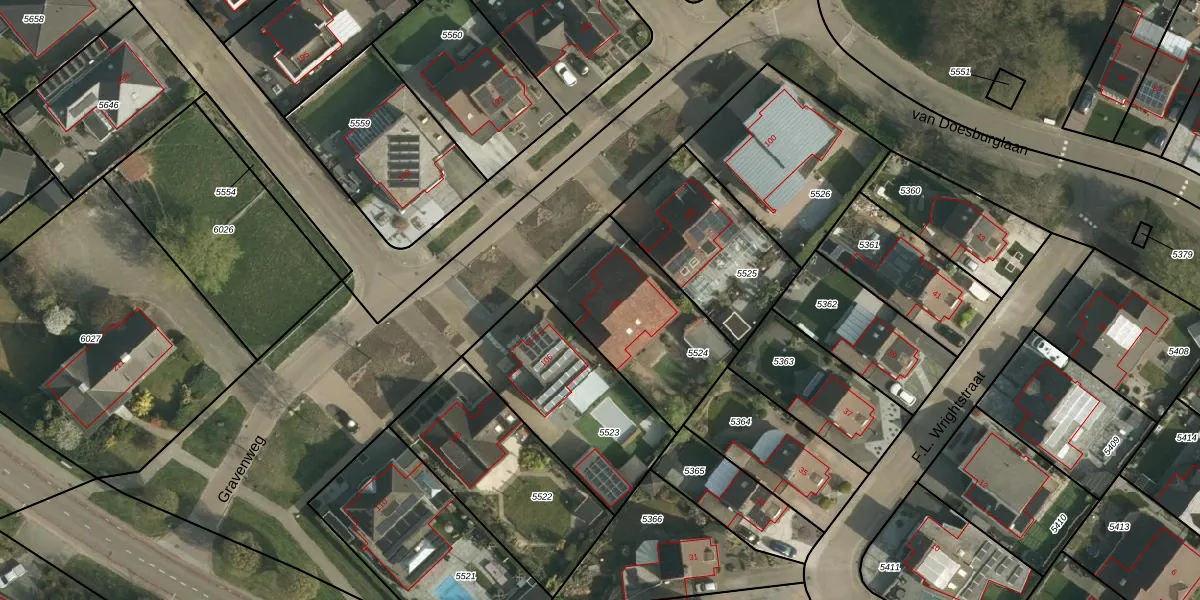 Het perceel waarop Gravenweg 104 staat heeft een oppervlakte van 555 m². Dit is een groot perceel. De perceeloppervlakte wordt geregistreerd door het Kadaster. Gedetailleerde informatie over de maten van dit perceel kunt u vinden in het rapport Kadastrale kaart met maatvoering van Gravenweg 104.