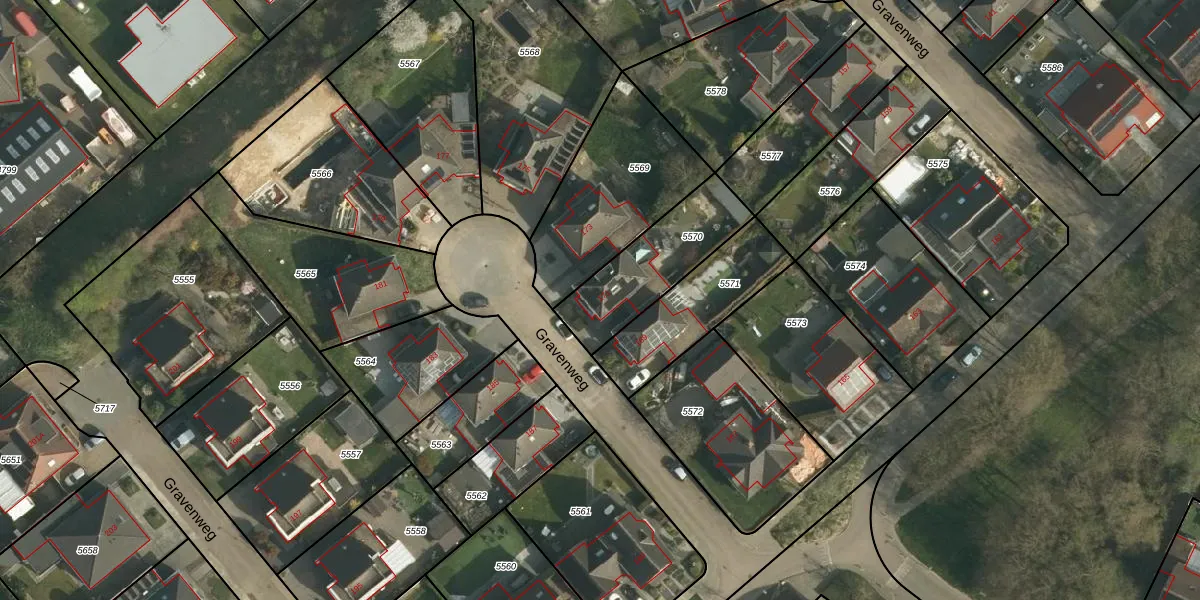 Het perceel waarop Gravenweg 171 staat heeft een oppervlakte van 355 m². Dit is een groot perceel. De perceeloppervlakte wordt geregistreerd door het Kadaster. Gedetailleerde informatie over de maten van dit perceel kunt u vinden in het rapport Kadastrale kaart met maatvoering van Gravenweg 171.