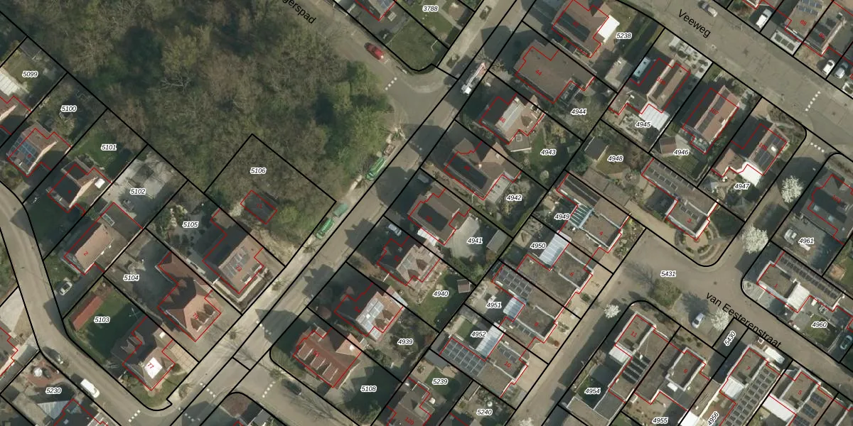 Gebruik de zoekbalk of klik op een perceel voor informatie over de adressen binnen dit perceel.