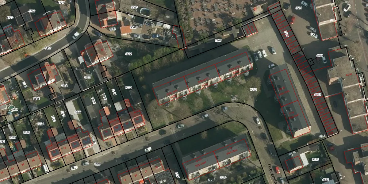 Het perceel waarop Grevenstraat 52 staat heeft een oppervlakte van 3928 m². Dit is een zeer groot perceel. De perceeloppervlakte wordt geregistreerd door het Kadaster. Gedetailleerde informatie over de maten van dit perceel kunt u vinden in het rapport Kadastrale kaart met maatvoering van Grevenstraat 52.