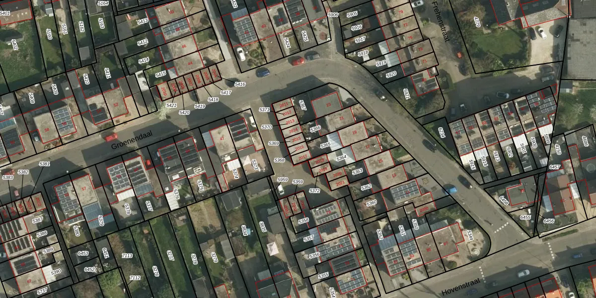 Het perceel waarop Groenendaal 2016 staat heeft een oppervlakte van 21 m². Dit is een klein perceel. De perceeloppervlakte wordt geregistreerd door het Kadaster. Gedetailleerde informatie over de maten van dit perceel kunt u vinden in het rapport Kadastrale kaart met maatvoering van Groenendaal 2016.