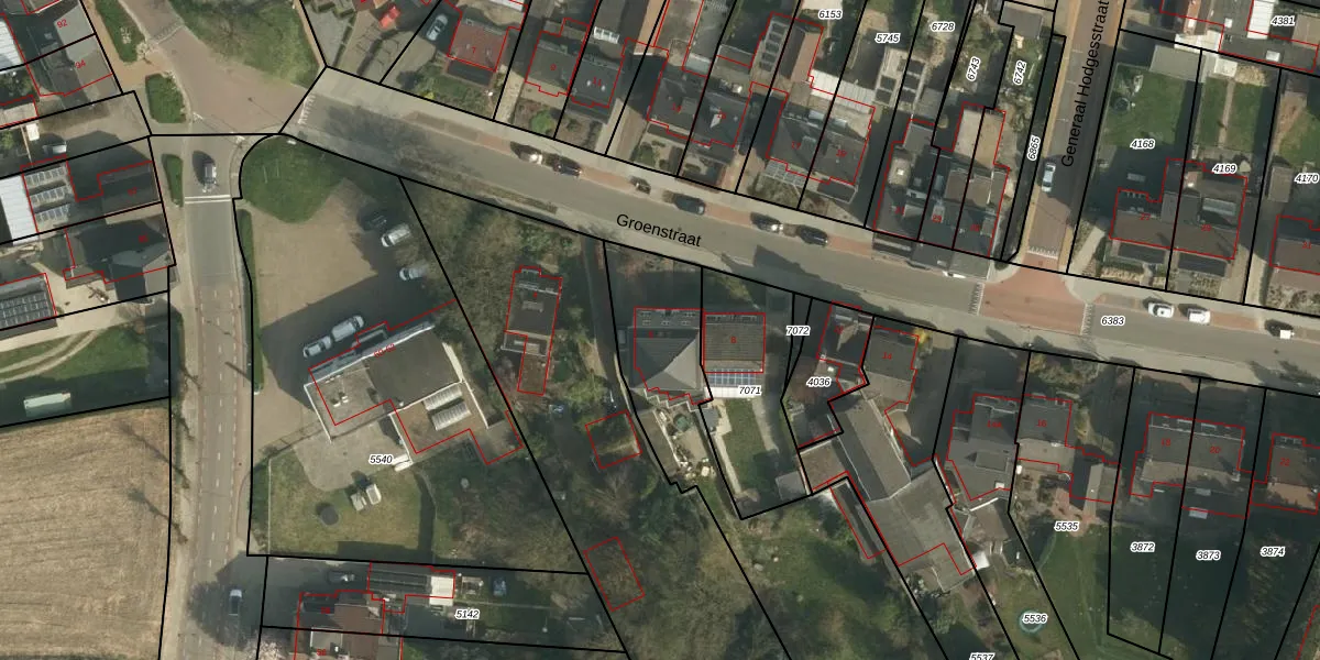 Het perceel waarop Groenstraat 6 staat heeft een oppervlakte van 1838 m². Dit is een zeer groot perceel. De perceeloppervlakte wordt geregistreerd door het Kadaster. Gedetailleerde informatie over de maten van dit perceel kunt u vinden in het rapport Kadastrale kaart met maatvoering van Groenstraat 6.