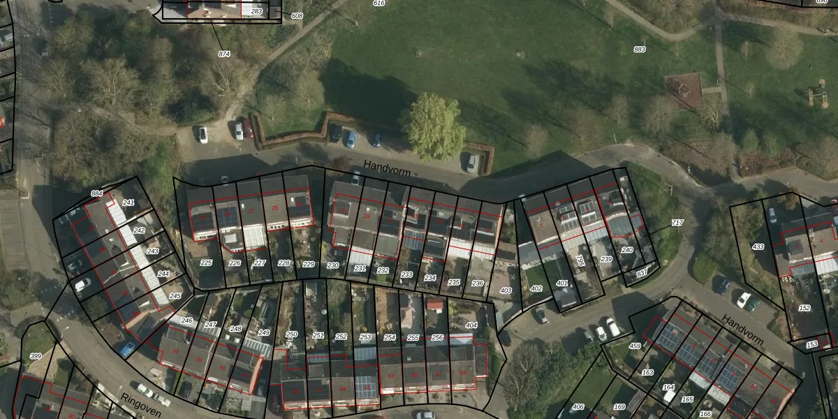 Het perceel waarop Handvorm 15 staat heeft een oppervlakte van 136 m². Dit is een middelgroot perceel. De perceeloppervlakte wordt geregistreerd door het Kadaster. Gedetailleerde informatie over de maten van dit perceel kunt u vinden in het rapport Kadastrale kaart met maatvoering van Handvorm 15.
