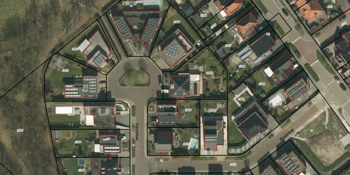 Het perceel waarop Hazelaar 3 staat heeft een oppervlakte van 817 m². Dit is een groot perceel. De perceeloppervlakte wordt geregistreerd door het Kadaster. Gedetailleerde informatie over de maten van dit perceel kunt u vinden in het rapport Kadastrale kaart met maatvoering van Hazelaar 3.