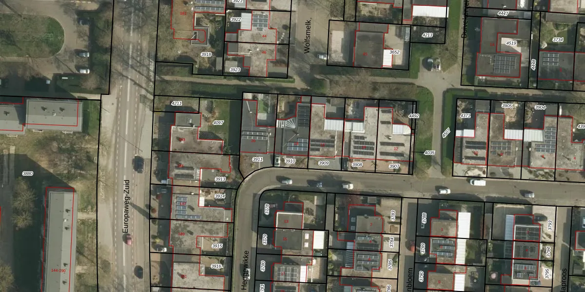 Gebruik de zoekbalk of klik op een perceel voor informatie over de adressen binnen dit perceel.