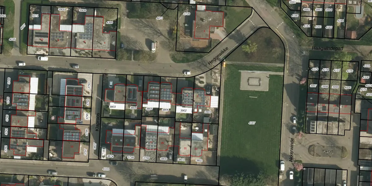 Gebruik de zoekbalk of klik op een perceel voor informatie over de adressen binnen dit perceel.