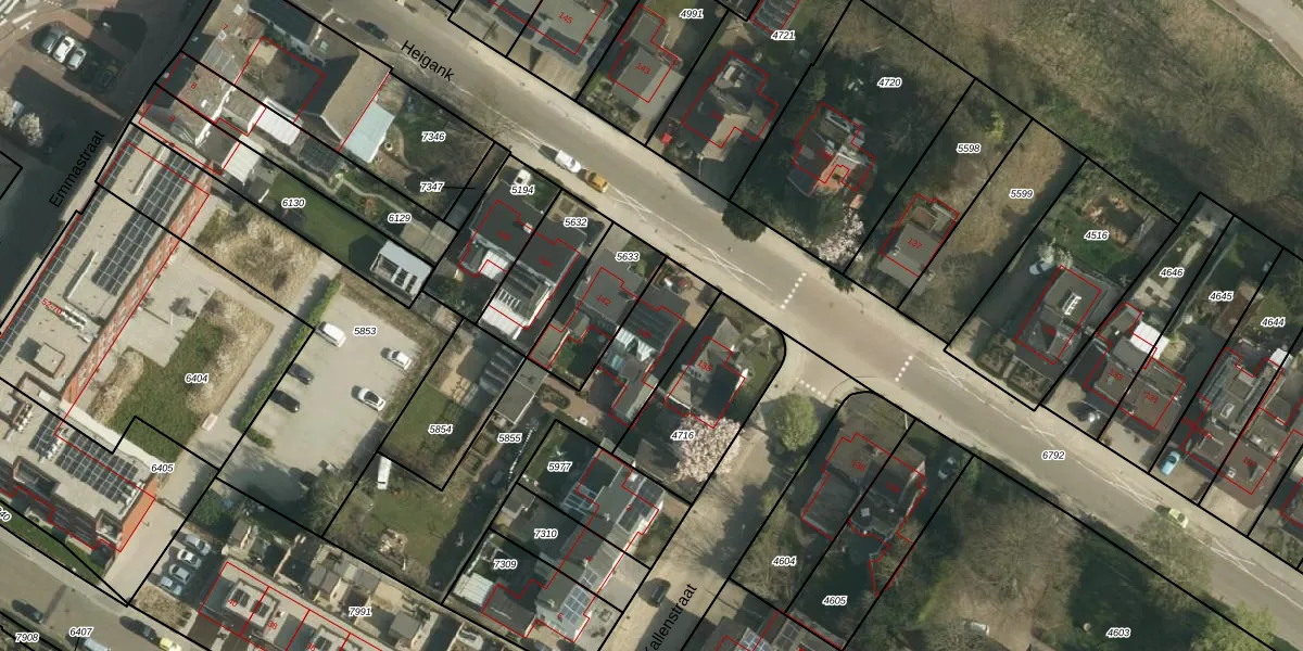 Het perceel waarop Heigank 140 staat heeft een oppervlakte van 825 m². Dit is een groot perceel. De perceeloppervlakte wordt geregistreerd door het Kadaster. Gedetailleerde informatie over de maten van dit perceel kunt u vinden in het rapport Kadastrale kaart met maatvoering van Heigank 140.