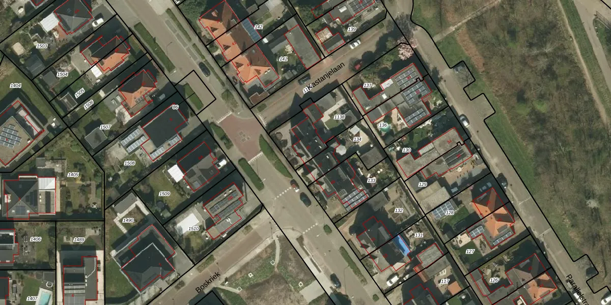 Het perceel waarop Heistraat 45 staat heeft een oppervlakte van 405 m². Dit is een groot perceel. De perceeloppervlakte wordt geregistreerd door het Kadaster. Gedetailleerde informatie over de maten van dit perceel kunt u vinden in het rapport Kadastrale kaart met maatvoering van Heistraat 45.