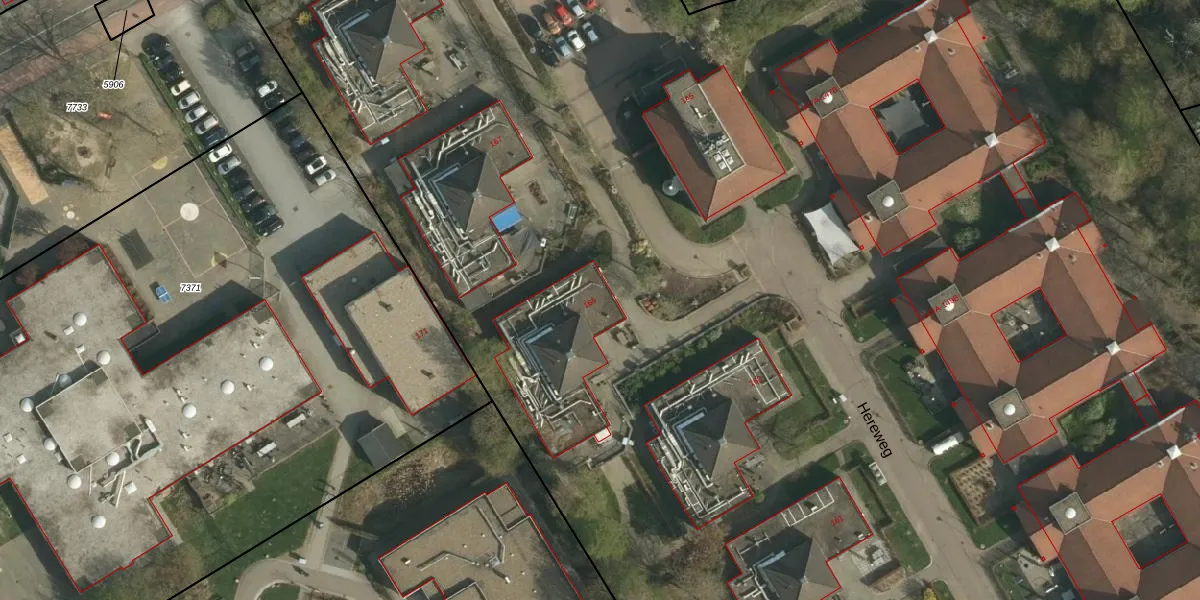 Het perceel waarop Hereweg 165 staat heeft een oppervlakte van 6,9 ha. Dit is een zeer groot perceel. De perceeloppervlakte wordt geregistreerd door het Kadaster. Gedetailleerde informatie over de maten van dit perceel kunt u vinden in het rapport Kadastrale kaart met maatvoering van Hereweg 165.