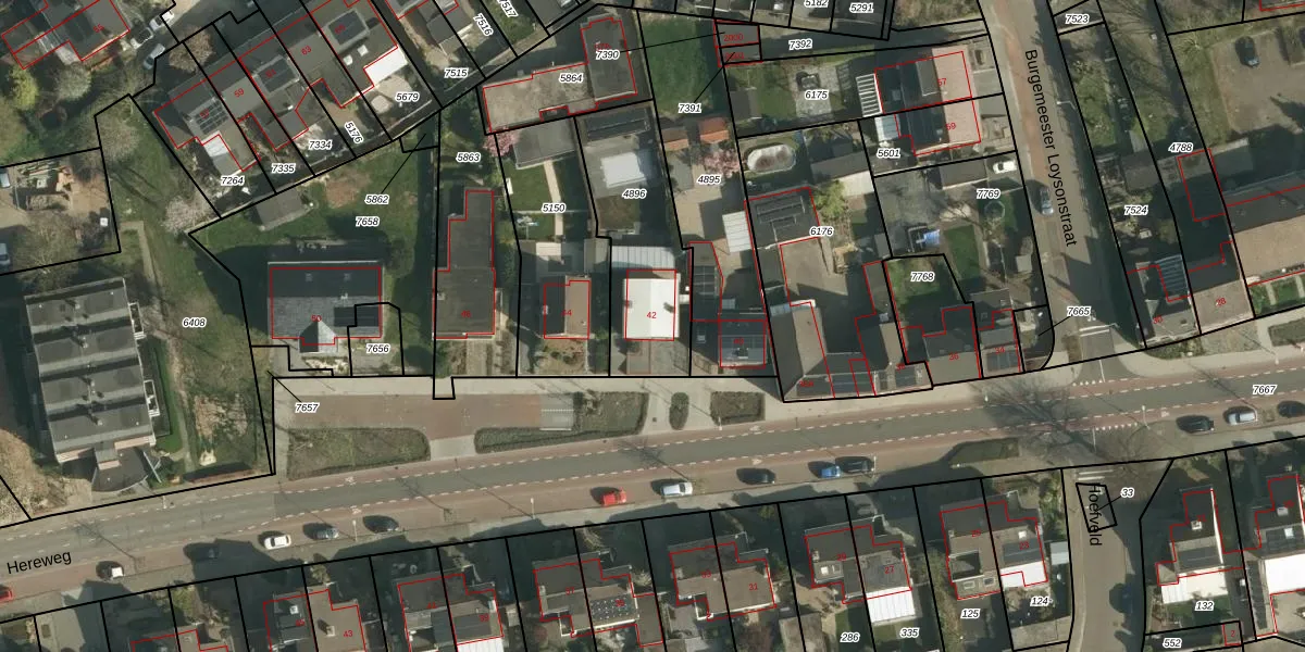 Het perceel waarop Hereweg 42 staat heeft een oppervlakte van 500 m². Dit is een groot perceel. De perceeloppervlakte wordt geregistreerd door het Kadaster. Gedetailleerde informatie over de maten van dit perceel kunt u vinden in het rapport Kadastrale kaart met maatvoering van Hereweg 42.