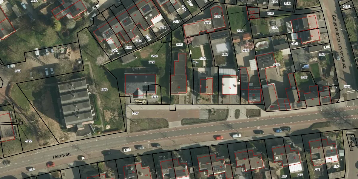 Het perceel waarop Hereweg 46 staat heeft een oppervlakte van 460 m². Dit is een groot perceel. De perceeloppervlakte wordt geregistreerd door het Kadaster. Gedetailleerde informatie over de maten van dit perceel kunt u vinden in het rapport Kadastrale kaart met maatvoering van Hereweg 46.
