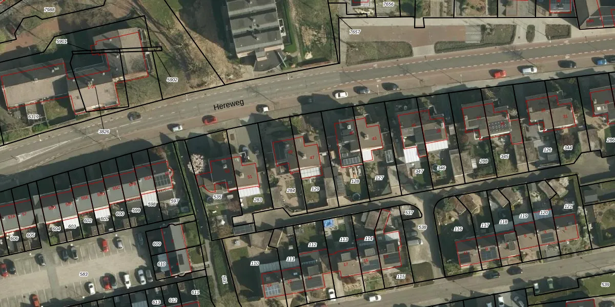 Het perceel waarop Hereweg 47 staat heeft een oppervlakte van 327 m². Dit is een groot perceel. De perceeloppervlakte wordt geregistreerd door het Kadaster. Gedetailleerde informatie over de maten van dit perceel kunt u vinden in het rapport Kadastrale kaart met maatvoering van Hereweg 47.