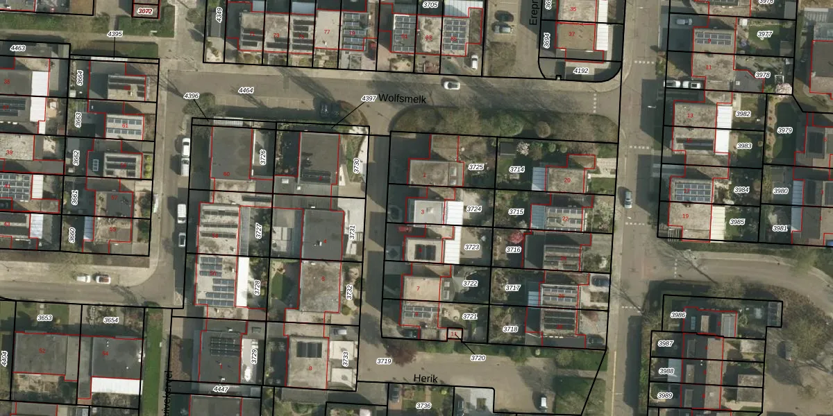 Gebruik de zoekbalk of klik op een perceel voor informatie over de adressen binnen dit perceel.