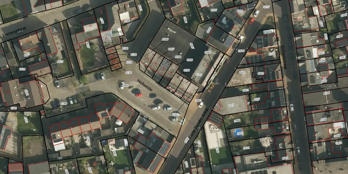 Hofweide 6 is gelegen op kadastraal perceel UBH00C6100. Deze kadastrale aanduiding is uniek en wordt gebruikt door het Kadaster om eigendomsrechten en andere zakelijke rechten vast te leggen. Het perceel maakt onderdeel uit van de kadastrale gemeente Ubach over Worms.
