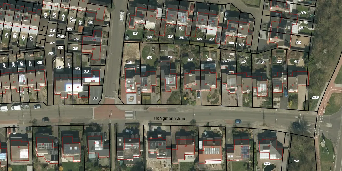 Gebruik de zoekbalk of klik op een perceel voor informatie over de adressen binnen dit perceel.