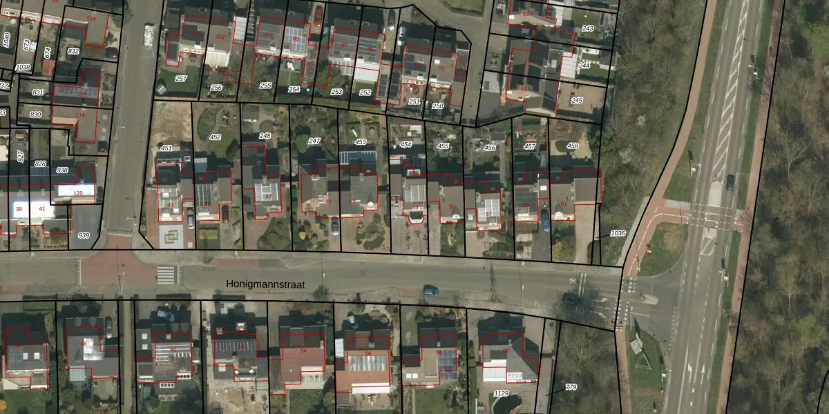 Honigmannstraat 53 is gelegen op kadastraal perceel LGF00C454. Deze kadastrale aanduiding is uniek en wordt gebruikt door het Kadaster om eigendomsrechten en andere zakelijke rechten vast te leggen. Het perceel maakt onderdeel uit van de kadastrale gemeente Landgraaf.