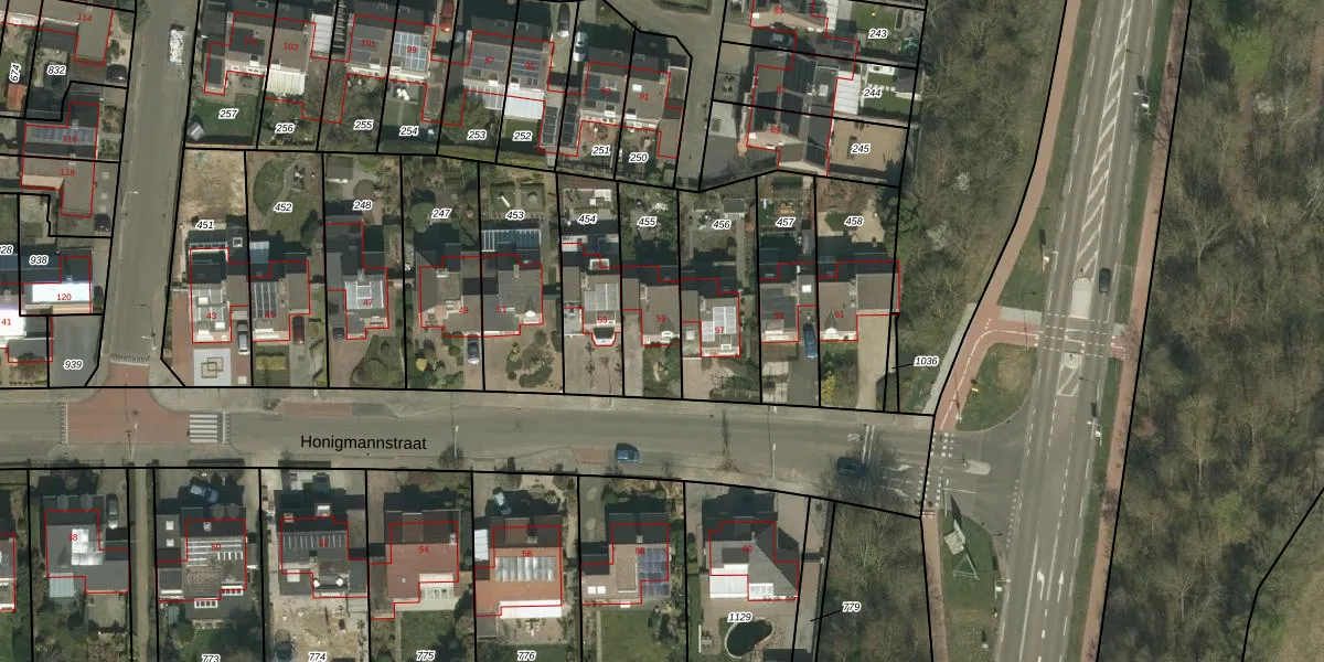 Gebruik de zoekbalk of klik op een perceel voor informatie over de adressen binnen dit perceel.