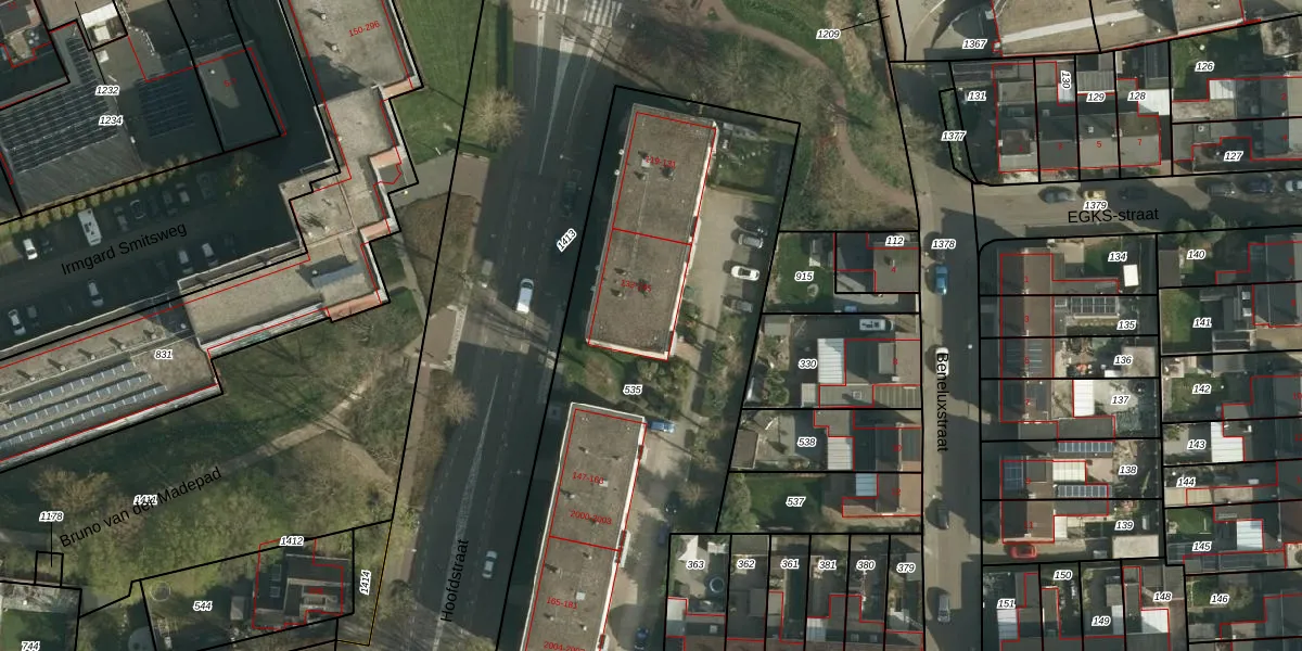 Hoofdstraat 143 is gelegen op kadastraal perceel SBG01F535. Deze kadastrale aanduiding is uniek en wordt gebruikt door het Kadaster om eigendomsrechten en andere zakelijke rechten vast te leggen. Het perceel maakt onderdeel uit van de kadastrale gemeente Schaesberg.