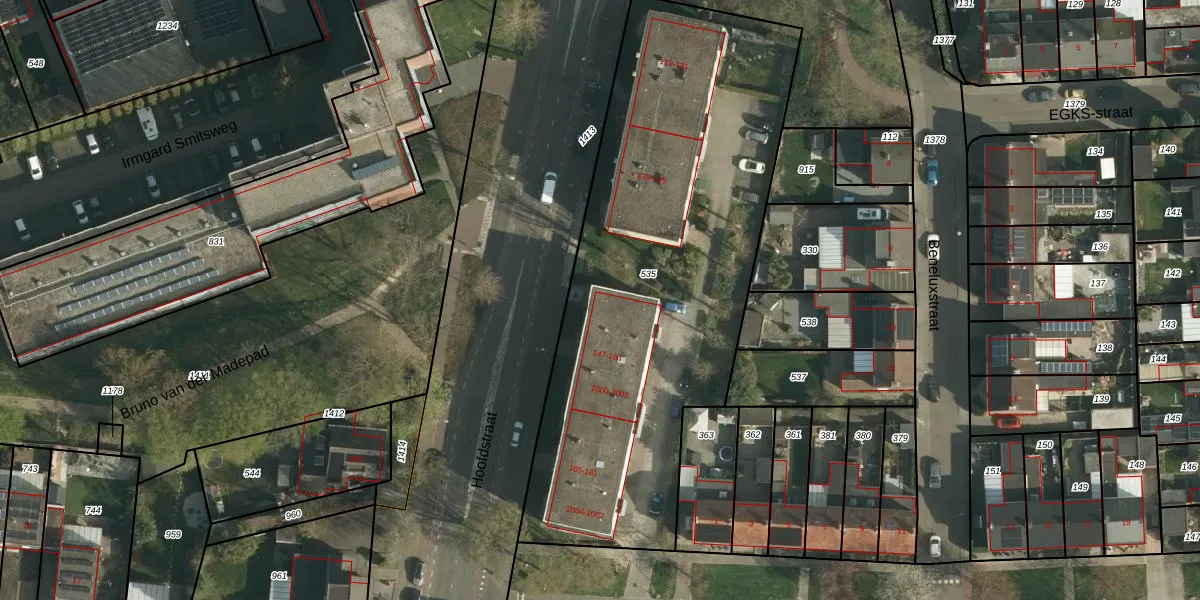 Het perceel waarop Hoofdstraat 147 staat heeft een oppervlakte van 2545 m². Dit is een zeer groot perceel. De perceeloppervlakte wordt geregistreerd door het Kadaster. Gedetailleerde informatie over de maten van dit perceel kunt u vinden in het rapport Kadastrale kaart met maatvoering van Hoofdstraat 147.
