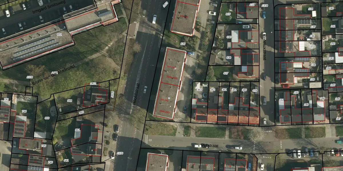 Het perceel waarop Hoofdstraat 167 staat heeft een oppervlakte van 2545 m². Dit is een zeer groot perceel. De perceeloppervlakte wordt geregistreerd door het Kadaster. Gedetailleerde informatie over de maten van dit perceel kunt u vinden in het rapport Kadastrale kaart met maatvoering van Hoofdstraat 167.