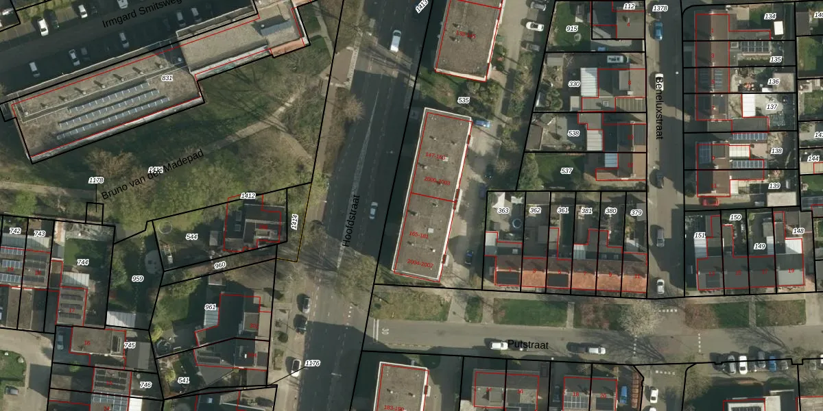 Het perceel waarop Hoofdstraat 169 staat heeft een oppervlakte van 2545 m². Dit is een zeer groot perceel. De perceeloppervlakte wordt geregistreerd door het Kadaster. Gedetailleerde informatie over de maten van dit perceel kunt u vinden in het rapport Kadastrale kaart met maatvoering van Hoofdstraat 169.