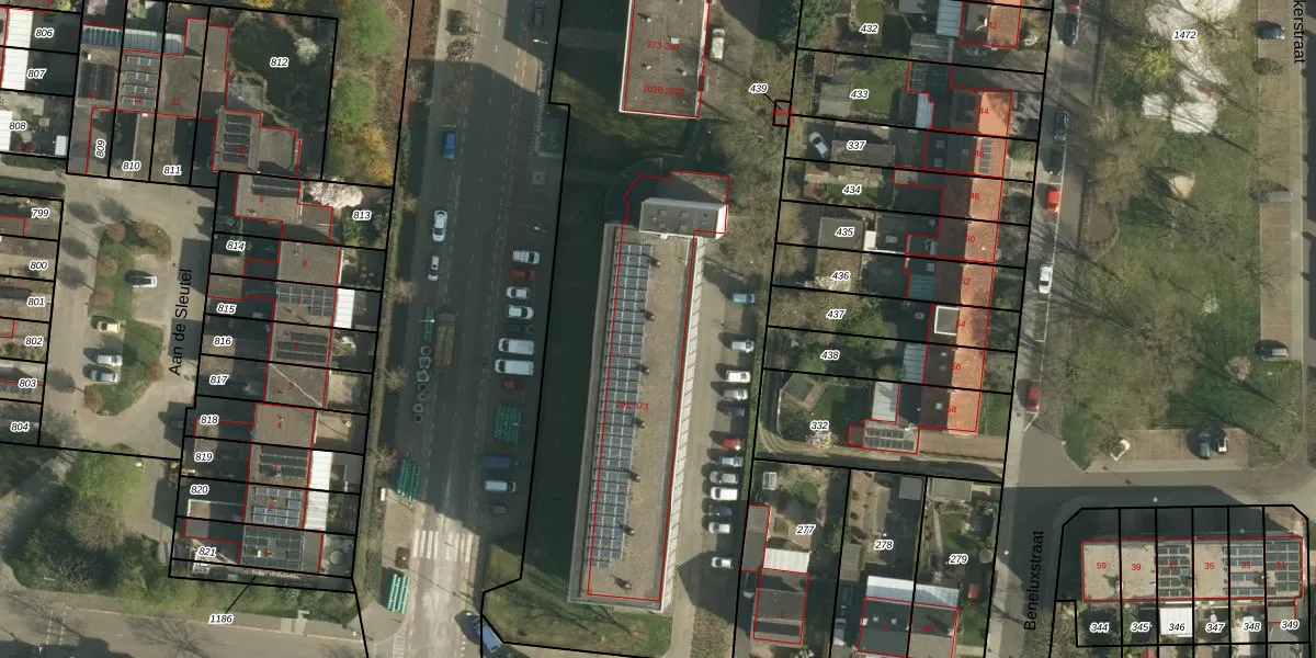 Hoofdstraat 349 is gelegen op kadastraal perceel SBG01F533. Deze kadastrale aanduiding is uniek en wordt gebruikt door het Kadaster om eigendomsrechten en andere zakelijke rechten vast te leggen. Het perceel maakt onderdeel uit van de kadastrale gemeente Schaesberg.