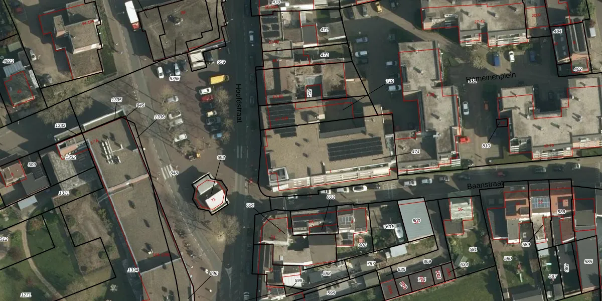 Het perceel waarop Hoofdstraat 69-E staat heeft een oppervlakte van 1010 m². Dit is een zeer groot perceel. De perceeloppervlakte wordt geregistreerd door het Kadaster. Gedetailleerde informatie over de maten van dit perceel kunt u vinden in het rapport Kadastrale kaart met maatvoering van Hoofdstraat 69-E.