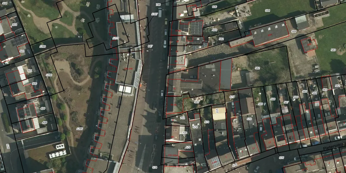Hoofdstraat 91 is gelegen op kadastraal perceel LGF00D582. Deze kadastrale aanduiding is uniek en wordt gebruikt door het Kadaster om eigendomsrechten en andere zakelijke rechten vast te leggen. Het perceel maakt onderdeel uit van de kadastrale gemeente Landgraaf.