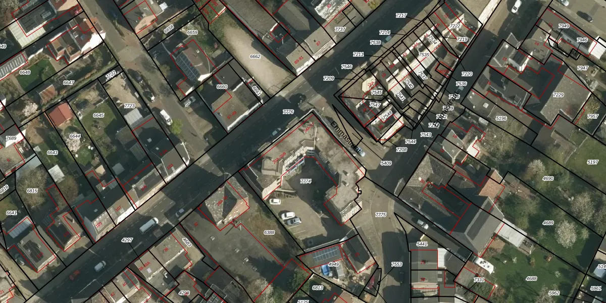 Het adres ligt op het perceel NWH01-B-7774, dat zich in de kadastrale gemeente Nieuwenhagen bevindt. Het perceel is kleiner dan gemiddeld in Nieuwenhagen. Het perceel is 1105 m² groot, terwijl het gemiddelde ligt op 1361,99 m². Het grootste perceel in de kadastrale gemeente is 17,6 ha. Het kleinste perceel heeft een oppervlakte van 1 m². Er zijn 23 adressen aanwezig op het perceel. De huidige grenzen van het perceel zijn digitaal in de Basisregistratie Kadaster (BRK) geregistreerd op 27-09-2013.