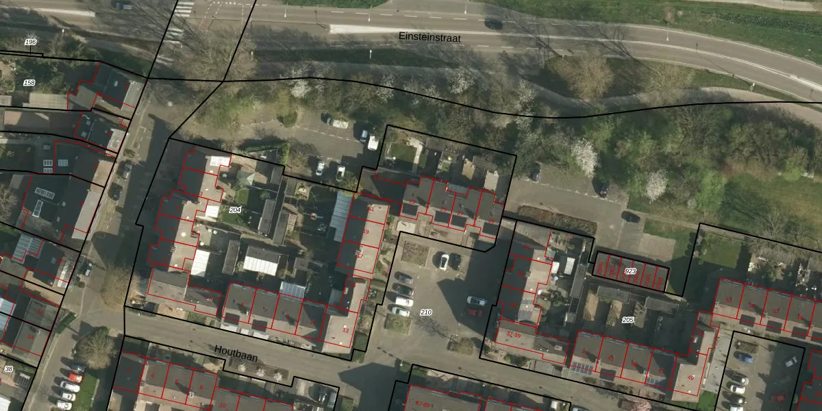 Het perceel waarop Houtbaan 23 staat heeft een oppervlakte van 3245 m². Dit is een zeer groot perceel. De perceeloppervlakte wordt geregistreerd door het Kadaster. Gedetailleerde informatie over de maten van dit perceel kunt u vinden in het rapport Kadastrale kaart met maatvoering van Houtbaan 23.
