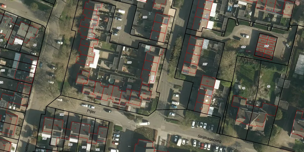 Het perceel waarop Houtbaan 28 staat heeft een oppervlakte van 3225 m². Dit is een zeer groot perceel. De perceeloppervlakte wordt geregistreerd door het Kadaster. Gedetailleerde informatie over de maten van dit perceel kunt u vinden in het rapport Kadastrale kaart met maatvoering van Houtbaan 28.