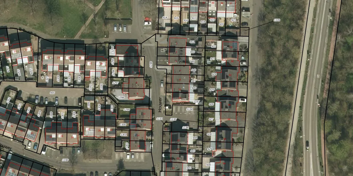 Het perceel waarop Houwer 11 staat heeft een oppervlakte van 109 m². Dit is een middelgroot perceel. De perceeloppervlakte wordt geregistreerd door het Kadaster. Gedetailleerde informatie over de maten van dit perceel kunt u vinden in het rapport Kadastrale kaart met maatvoering van Houwer 11.