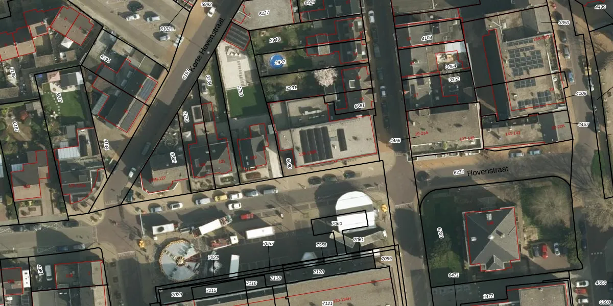Het perceel waarop Hovenstraat 135 staat heeft een oppervlakte van 695 m². Dit is een groot perceel. De perceeloppervlakte wordt geregistreerd door het Kadaster. Gedetailleerde informatie over de maten van dit perceel kunt u vinden in het rapport Kadastrale kaart met maatvoering van Hovenstraat 135.