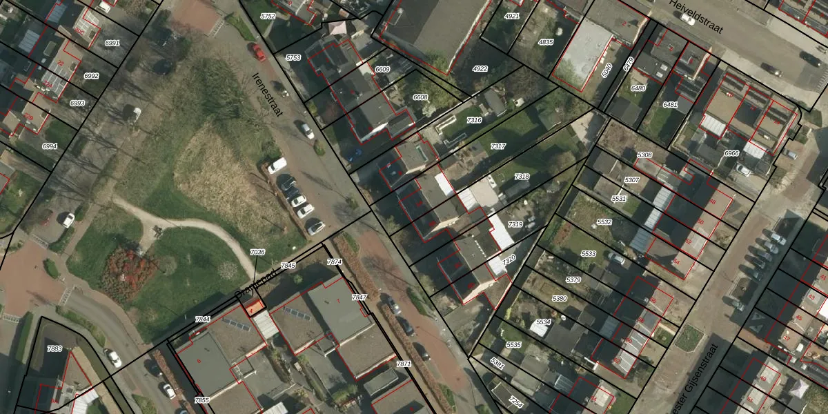 Het perceel waarop Irenestraat 8-A staat heeft een oppervlakte van 503 m². Dit is een groot perceel. De perceeloppervlakte wordt geregistreerd door het Kadaster. Gedetailleerde informatie over de maten van dit perceel kunt u vinden in het rapport Kadastrale kaart met maatvoering van Irenestraat 8-A.