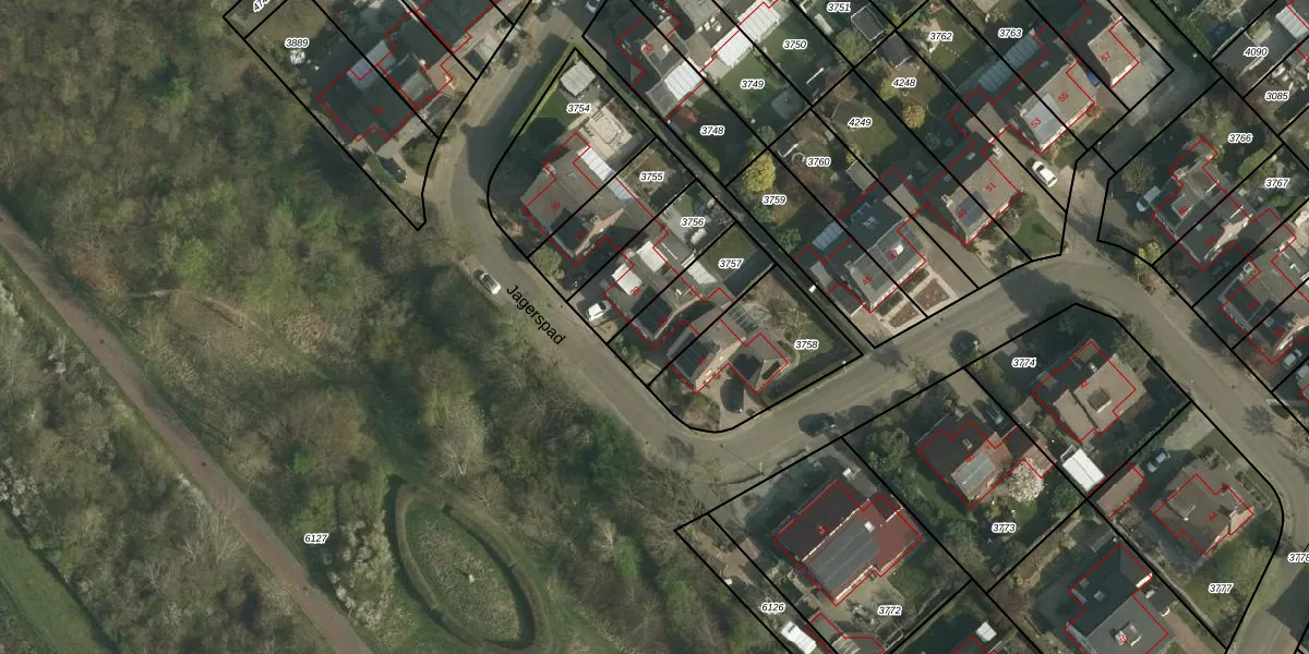 Jagerspad 41 is gelegen op kadastraal perceel UBH00A3757. Deze kadastrale aanduiding is uniek en wordt gebruikt door het Kadaster om eigendomsrechten en andere zakelijke rechten vast te leggen. Het perceel maakt onderdeel uit van de kadastrale gemeente Ubach over Worms.