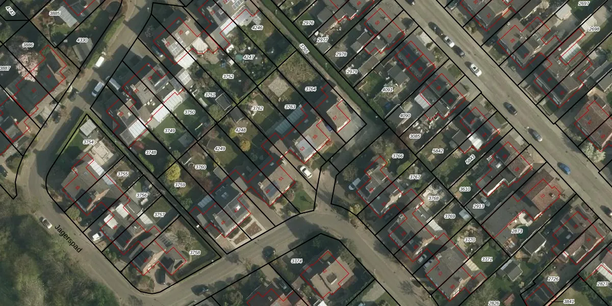 Jagerspad 53 is gelegen op kadastraal perceel UBH00A3762. Deze kadastrale aanduiding is uniek en wordt gebruikt door het Kadaster om eigendomsrechten en andere zakelijke rechten vast te leggen. Het perceel maakt onderdeel uit van de kadastrale gemeente Ubach over Worms.