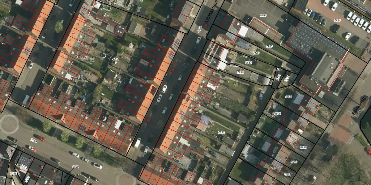 Het perceel waarop Julianastraat 16 staat heeft een oppervlakte van 3137 m². Dit is een zeer groot perceel. De perceeloppervlakte wordt geregistreerd door het Kadaster. Gedetailleerde informatie over de maten van dit perceel kunt u vinden in het rapport Kadastrale kaart met maatvoering van Julianastraat 16.
