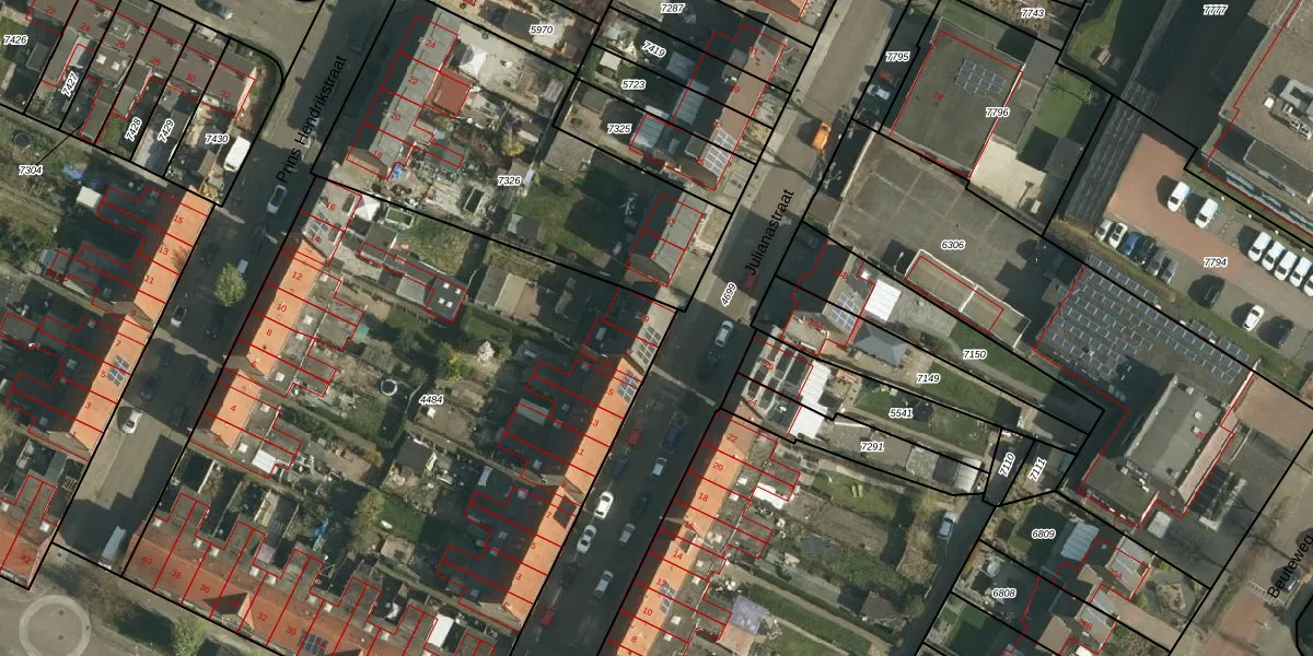 Het perceel waarop Julianastraat 19 staat heeft een oppervlakte van 4135 m². Dit is een zeer groot perceel. De perceeloppervlakte wordt geregistreerd door het Kadaster. Gedetailleerde informatie over de maten van dit perceel kunt u vinden in het rapport Kadastrale kaart met maatvoering van Julianastraat 19.