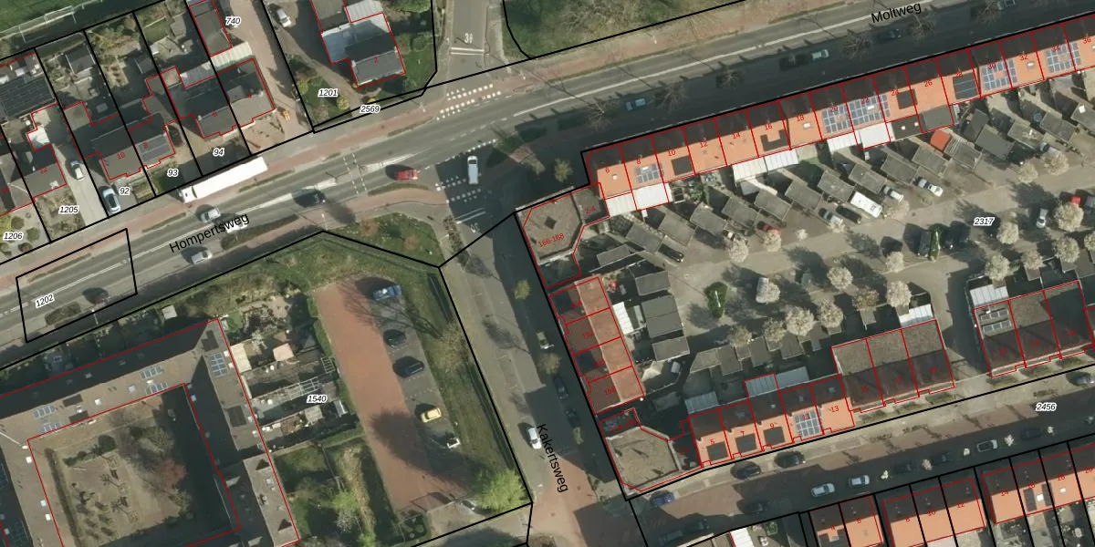 Het perceel waarop Kakertsweg 166 staat heeft een oppervlakte van 8357 m². Dit is een zeer groot perceel. De perceeloppervlakte wordt geregistreerd door het Kadaster. Gedetailleerde informatie over de maten van dit perceel kunt u vinden in het rapport Kadastrale kaart met maatvoering van Kakertsweg 166.