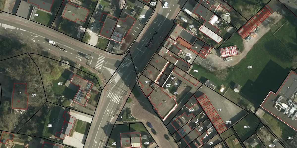 Kampstraat 2-A is gelegen op kadastraal perceel SBG01E977. Deze kadastrale aanduiding is uniek en wordt gebruikt door het Kadaster om eigendomsrechten en andere zakelijke rechten vast te leggen. Het perceel maakt onderdeel uit van de kadastrale gemeente Schaesberg.