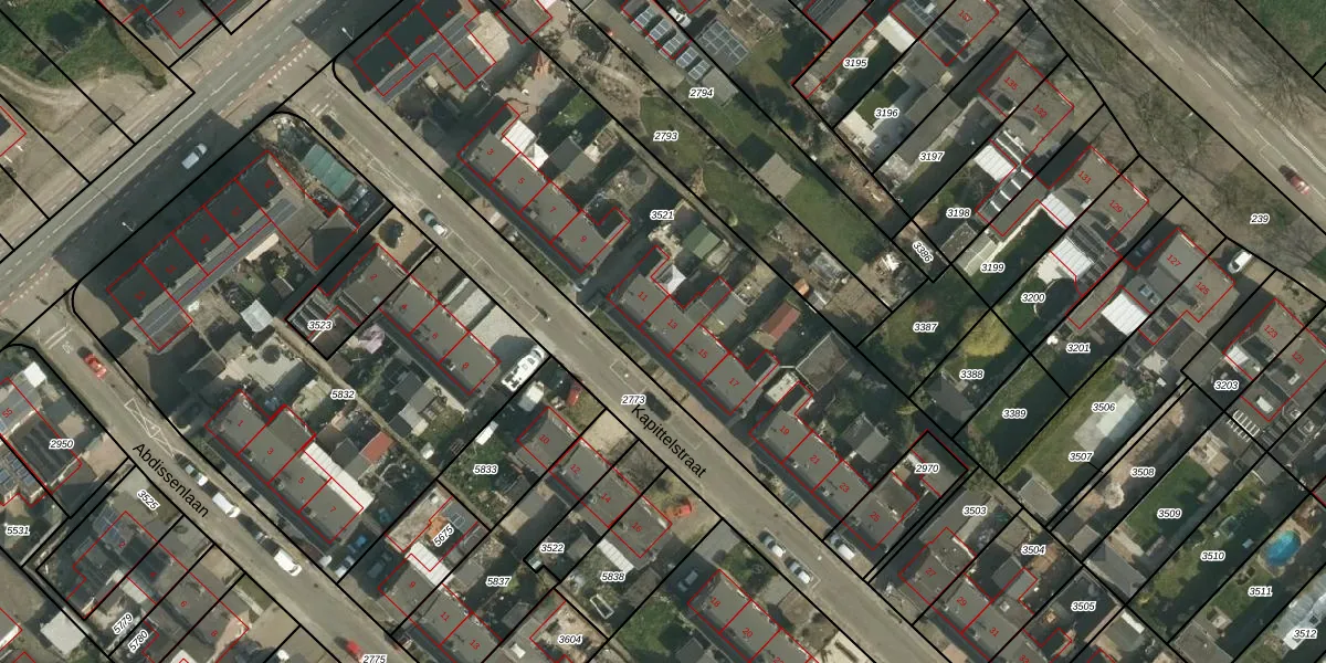 Het perceel waarop Kapittelstraat 13 staat heeft een oppervlakte van 2540 m². Dit is een zeer groot perceel. De perceeloppervlakte wordt geregistreerd door het Kadaster. Gedetailleerde informatie over de maten van dit perceel kunt u vinden in het rapport Kadastrale kaart met maatvoering van Kapittelstraat 13.