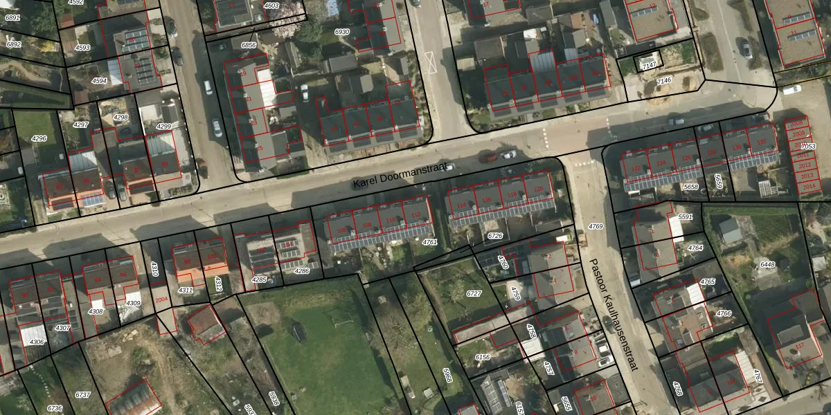 Karel Doormanstraat 112 is gelegen op kadastraal perceel UBH00C4761. Deze kadastrale aanduiding is uniek en wordt gebruikt door het Kadaster om eigendomsrechten en andere zakelijke rechten vast te leggen. Het perceel maakt onderdeel uit van de kadastrale gemeente Ubach over Worms.