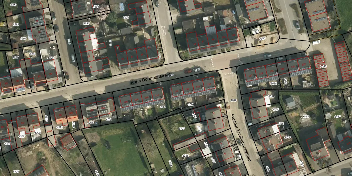 Karel Doormanstraat 114 is gelegen op kadastraal perceel UBH00C4761. Deze kadastrale aanduiding is uniek en wordt gebruikt door het Kadaster om eigendomsrechten en andere zakelijke rechten vast te leggen. Het perceel maakt onderdeel uit van de kadastrale gemeente Ubach over Worms.