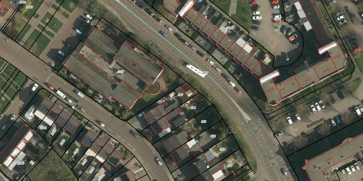 Keizerstraat 2000 is gelegen op kadastraal perceel SBG01E185. Deze kadastrale aanduiding is uniek en wordt gebruikt door het Kadaster om eigendomsrechten en andere zakelijke rechten vast te leggen. Het perceel maakt onderdeel uit van de kadastrale gemeente Schaesberg.