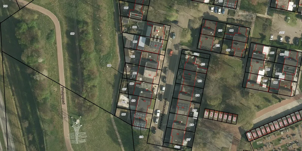 Kennedyplantsoen 64 is gelegen op kadastraal perceel LGF00B681. Deze kadastrale aanduiding is uniek en wordt gebruikt door het Kadaster om eigendomsrechten en andere zakelijke rechten vast te leggen. Het perceel maakt onderdeel uit van de kadastrale gemeente Landgraaf.
