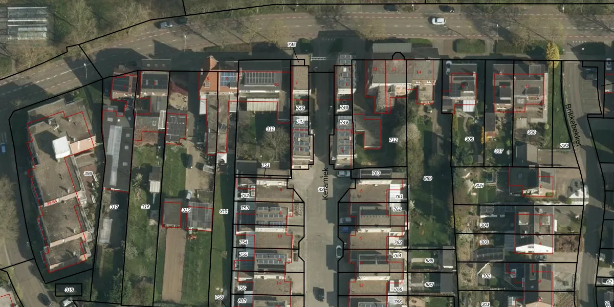 Het perceel waarop Keramiek 4 staat heeft een oppervlakte van 117 m². Dit is een middelgroot perceel. De perceeloppervlakte wordt geregistreerd door het Kadaster. Gedetailleerde informatie over de maten van dit perceel kunt u vinden in het rapport Kadastrale kaart met maatvoering van Keramiek 4.